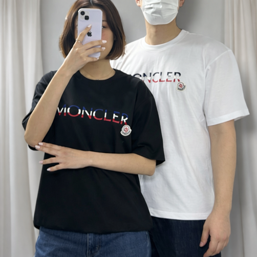 몽클레어 삼색 엠보자수 와펜 패치 반팔티
