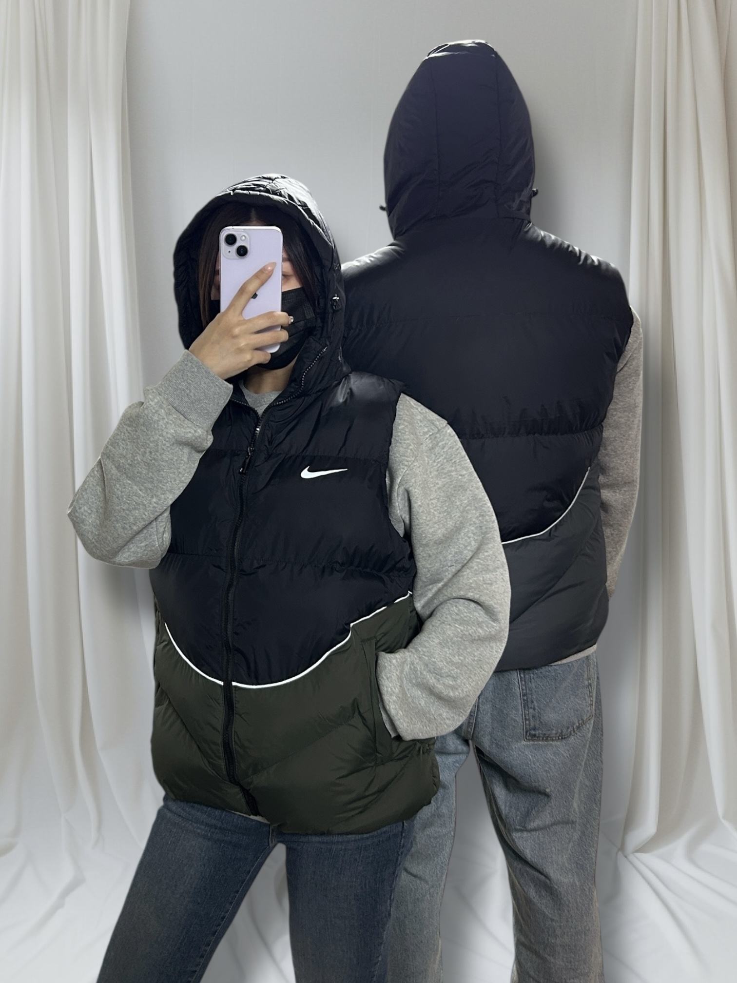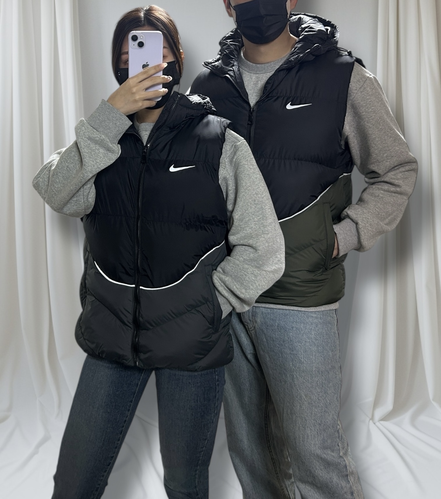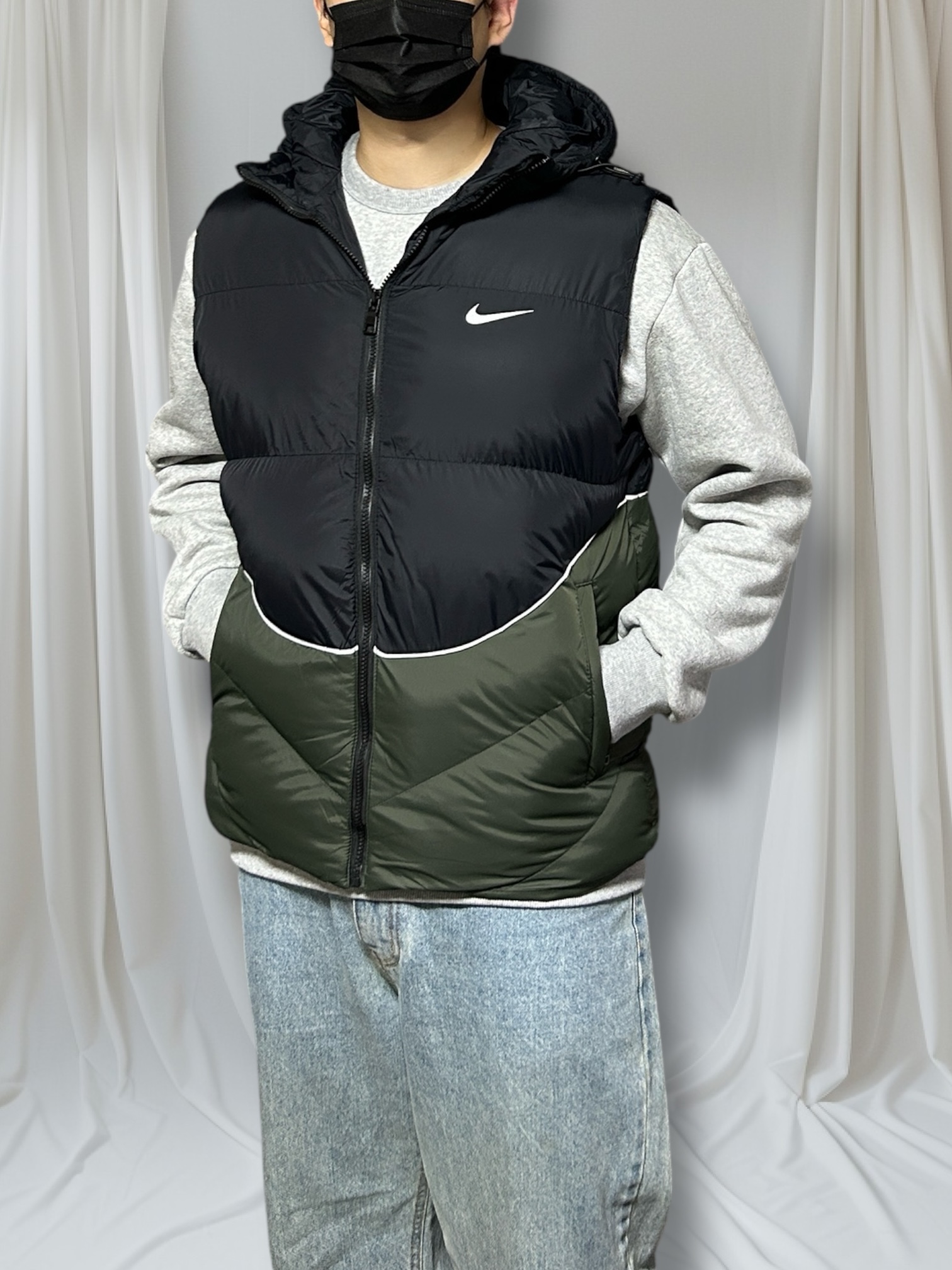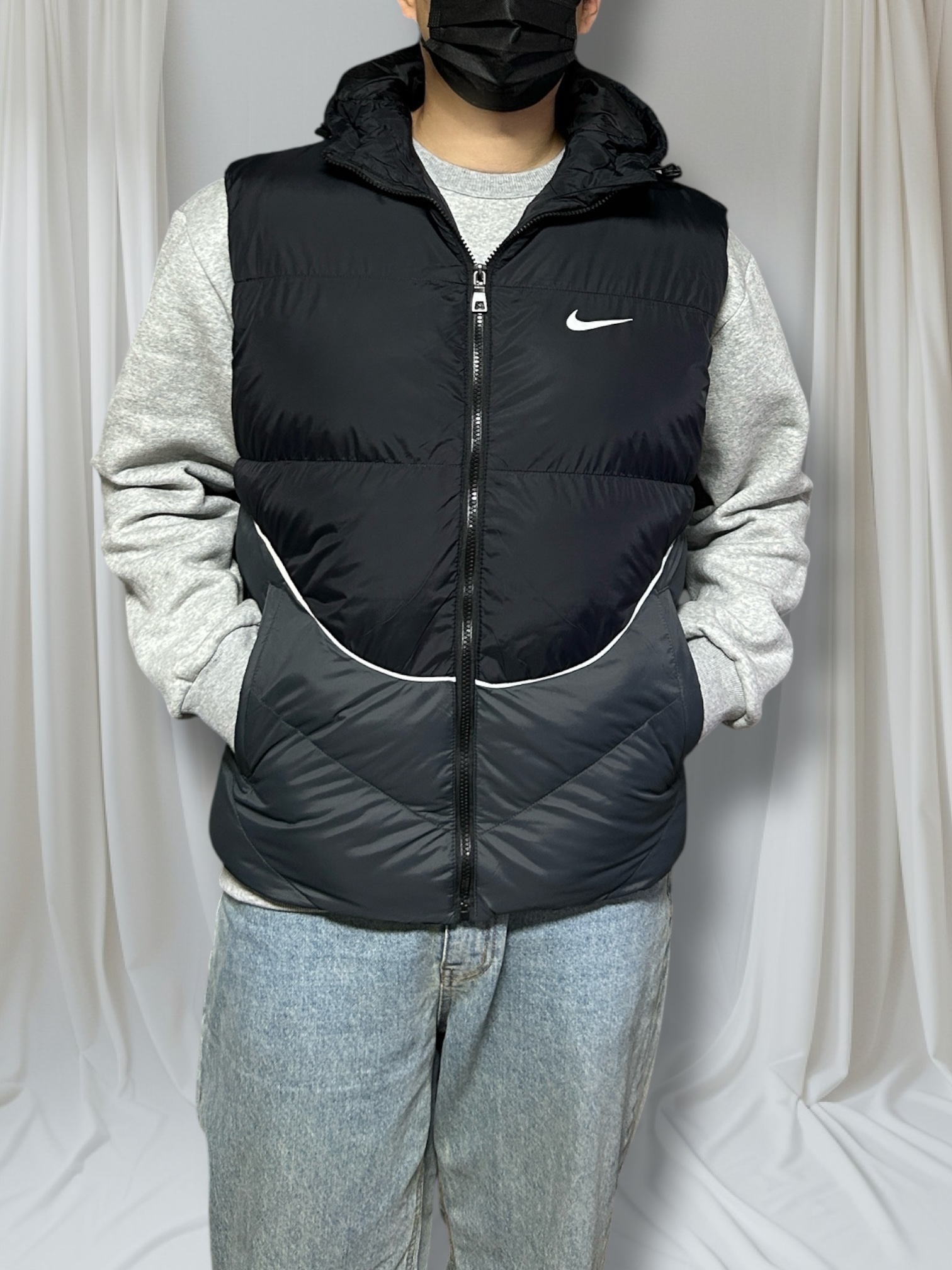 나이키 배색 패딩 조끼