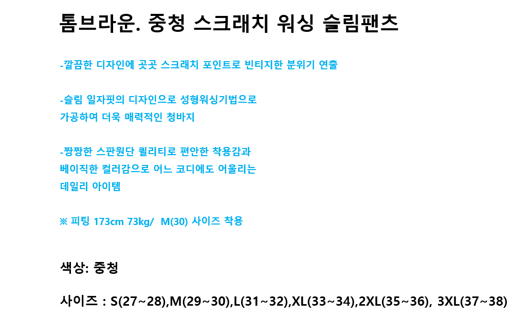 톰브라운. 중청 스크래치 워싱 슬림팬츠
